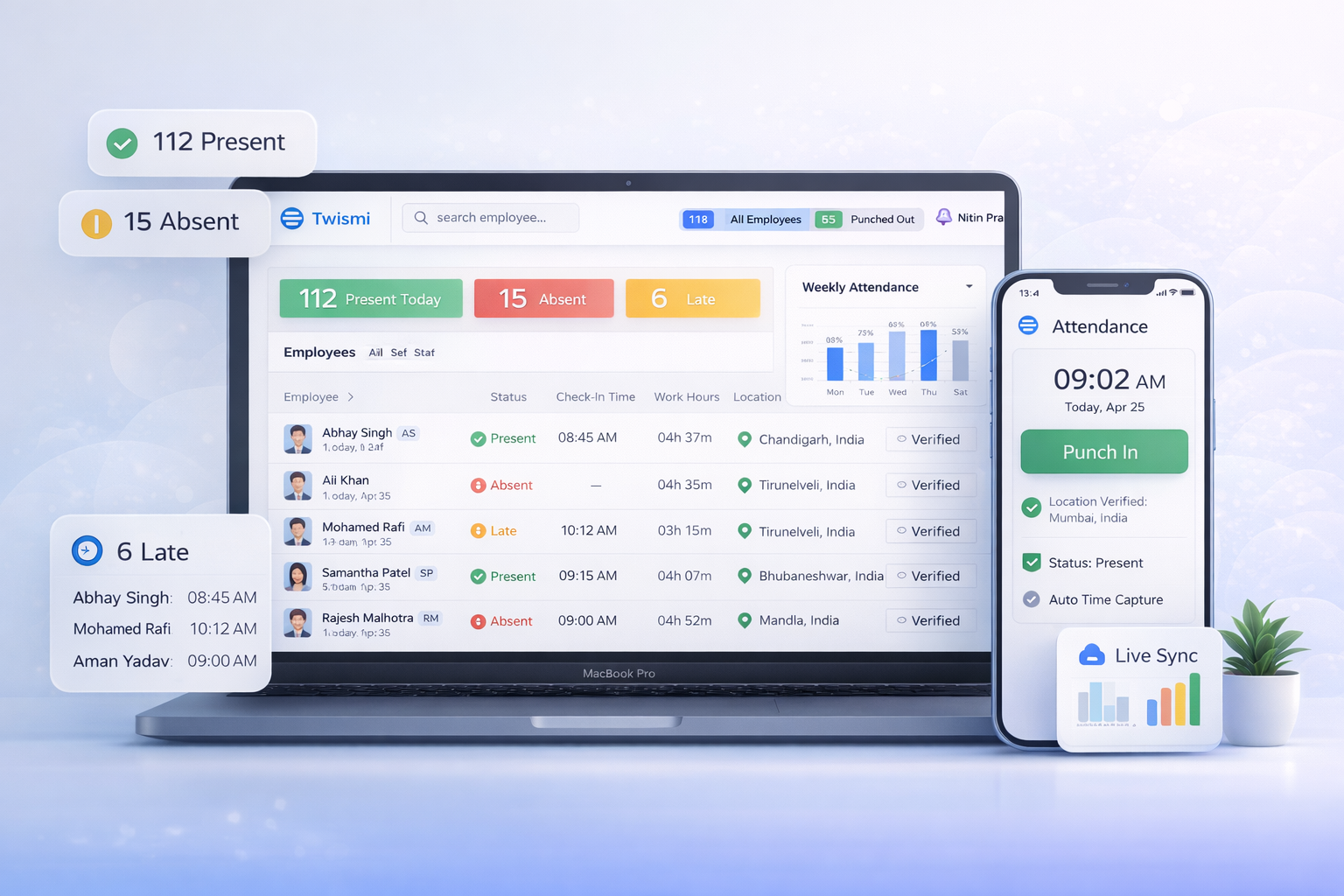 Enable mobile- based punch- in and Punch -out with real time and GPS location capture. Prevent Proxy attendance and ensure accurate work- hour tracking with live verification and centralized monitoring.