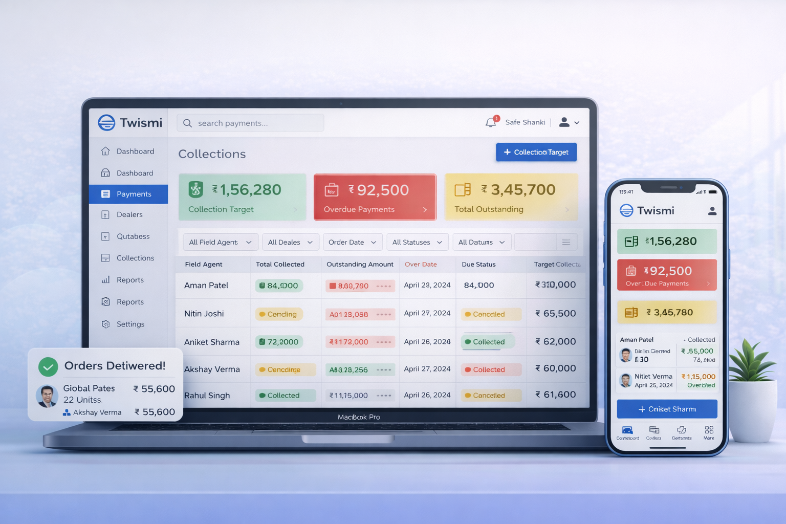 A real-time dashboard displaying outstanding, overdue payments, targets, and collections. Enables quick actions like approvals and order redirection for faster decision-making and better performance tracking.