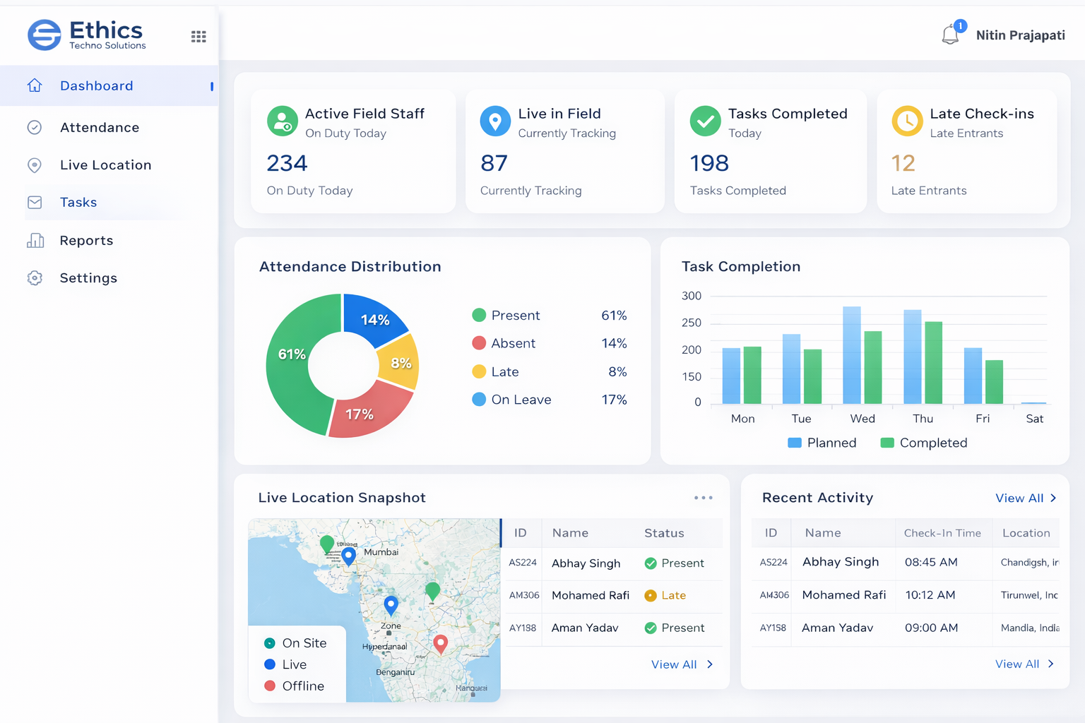 Track Field employees, visits, attendance, routes, and performance in real time, ensuring complete transparency and accountability.