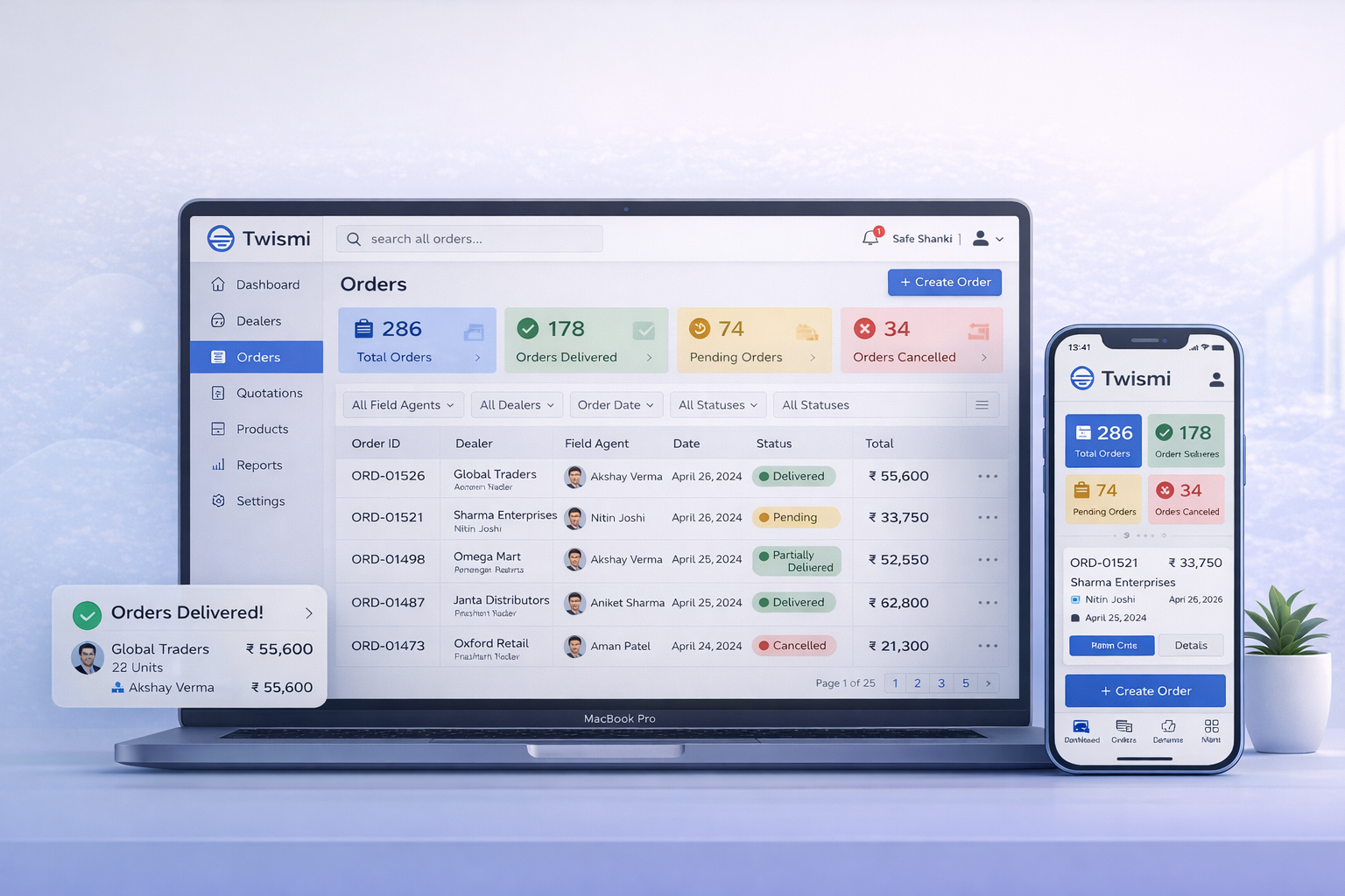 Allow field teams to generate quotations, capture orders, and manage dealer information directly from the app. Reduce manual paperwork and speed up order processing with instant system updates.